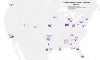 - ^ a b DeLassus, David. "Recognized National Championships by Year". College Football Data Warehouse. Archived from the original on October 15, 2016. Retrieved May 5, 2015.
