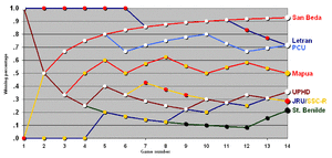 - ^ All of Letran's wins were forfeited when a player was found to have played in a ligang labas game.