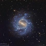 NGC 1073 is similar to the Milky Way only in their shared possession of a galactic bar. NGC 1073, however, does not possess the well-defined symmetrical arm structure the Milky Way exhibits, and retains a central bar larger than our home galaxy’s.[4] NGC 1073 can be viewed with a mid-sized telescope in rural, dark skies.