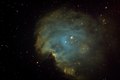 NGC 2174 (also known as Monkey Head Nebula) is an H II[1] emission nebula located in the constellation Orion and is associated with the open star cluster NGC 2175.[1] It is thought to be located about 6,400 light-years away from Earth. The nebula may have formed through hierarchical collapse.[2]