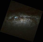 NGC 3593 is a lenticular galaxy located in the constellation Leo. It has a morphological classification of SA(s)0/a,[3] which indicates it is a lenticular galaxy of the pure spiral type.[4] This is a starburst galaxy, which means it is forming new stars at a high rate. This is occurring in a band of gas surrounding the central nucleus. There is a single arm, which spirals outward from this ring.[5] It is frequently but not consistently identified as a member of the Leo Triplet group.[6]