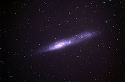 NGC 55, also occasionally referred to as The Whale Galaxy, is a Magellanic type barred spiral galaxy located about 6.5 million light-years away in the constellation Sculptor. Along with its neighbor NGC 300, it is one of the closest galaxies to the Local Group, probably lying between the Milky Way and the Sculptor Group.[7]