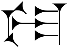 The Sumerian word NIN (from the Akkadian pronunciation of the sign EREŠ)() was used to denote a queen or a priestess, and is often translated as "lady". Other translations include "queen", "mistress", "proprietress", and "lord".[1]
