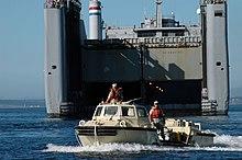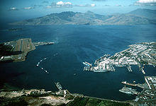 The lack of stevedores in combat zones was a huge issue for the Navy. Authorization for the formation of cargo handling CBs or "Special CBs" happened mid-September 1942.[36] By wars end 41 Special CBs had been commissioned of which 15 were "colored". They were the first fully integrated units in the U.S. Navy.[35] V-J Day brought the decommissioning of all of them. The Special CBs were forerunners of today's Navy Cargo Handling Battalions of the Navy Expeditionary Logistics Support Group (United States). The arrival of 15 colored Special CBs in Pearl Harbor made segregation an issue for the Navy.[37] For some time the men slept in tents, but the disparity of treatment was obvious even to the Navy.[37] The 14th Naval District felt they deserved proper shelter with at least separate but equal barracks.[37] Manana Barracks and Waiawa Gulch became the United States' largest colored military installation with over 4,000 Seabee stevedores housed there.[37] It was the site of racial strife to the point that the camp was fenced in and placed under armed guard.[37] The Seabees were trucked to and from the docks in cattle trucks.[37] Two naval supply depots were located at Waiawa Gulch. At wars end 12,500 African Americans would serve in the Construction Battalions.[38]
