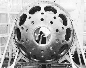 LLNL's history with the ICF program starts with physicist John Nuckolls, who predicted in 1972 that ignition could be achieved with laser energies about 1 kJ, while "high gain" would require energies around 1 MJ.[5][6] Although this sounds very low powered compared to modern machines, at the time it was just beyond the state of the art, and led to a number of programs to produce lasers in this power range.