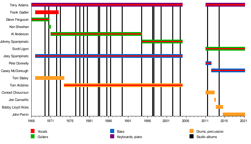 - Terry Adams – keyboards, vocals (1966-present), occasional live drums (1974-2004, 2015-present)
