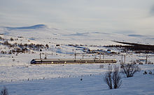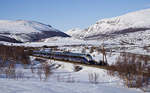 NSB Class 73 (Norwegian: NSB-type 73) is a class of 22 electric multiple units built by Adtranz for the Norwegian State Railways. The four-car trains were modifications of Class 71, which was again based on the Swedish X2. The A-series consists of 16 intercity trains; they were delivered in 1999 and 2000 and are used on the Bergen, Dovre and Sørland Lines. The intercity service was branded as Signatur until 2003. The B-series consists of six regional trains delivered in 2002 and used on the Østfold Line. The regional trains were originally part of the Agenda concept. The trains have a power output of 2,646 kilowatts (3,548 hp) and a maximum speed of 210 km/h (130 mph). They have an overall length of 108 meters (354 ft) and have a capacity for 208 seated passengers in the A-series and 250 in the B-series. The trains have a tilting mechanism allowing for faster travel through curves.