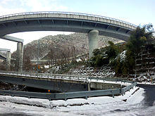 In addition to a transportation legacy, several world-class venues of the 1998 Winter Olympics were built, including M-Wave, Japan's first International Skating Union (ISU) standard indoor 400m double-track,[8] and which happens to be one of the largest hanging wooden roof structures in the world.[9] Finally, the Athletes Village beside the newly constructed Imai Station was built in advance of the Games by the city of Nagano as future public residential housing, and loaned to the Nagano Olympic Organizing Committee during the Games.[10] A Media Village, composed of a four-block 10-12 storey apartment complex named Asahi Danchi, was built in the Asahi district of Nagano, across the street from the M-Wave.[11][12] Asahi Danchi now includes private sector housing as well as housing for government employees.[13]