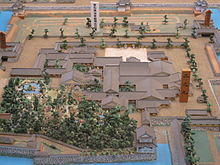 In preparation for Expo 2005, English-language plaques were added to most displays, and a 3D movie showing the paintings in Honmaru Palace (本丸御殿, Honmaru Goten) was created for the anticipated large number of visitors. Reconstruction work of the destroyed Honmaru Palace began in 2009 and was completed by 2018.[4] Nagoya mayor Takashi Kawamura announced plans in 2009 to completely reconstruct in wood the main towers that were destroyed during the Second World War, just as in the original structure. The budget to reconstruct the main towers was estimated at billions of yen.[5][6] After negotiations with the national authorities, the plan was approved and in July 2017 the city officially launched the fundraising campaign. The platform for international online donations opened in 2020.[7] The goal is to reconstruct the main tower by 2022.[8][9][10] Collection of necessary hinoki timber started in the forests of Gifu prefecture in 2019.[11]