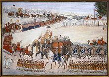 Nawab (Bengali: নবাব/নওয়াব, Devanagari: नवाब/नबाब, Perso-Arabic: نواب) also spelt Nawaab, Navaab, Navab, Nowab, Nabob, Nawaabshah, Nawabshah or Nobab, is a Royal title indicating a sovereign ruler, often of a South Asian state, in many ways comparable to the western titles of King. The relationship of a Nawab to the Emperor of India has been compared to that of the Kings of Saxony to the German Emperor.[1] In earlier times the title was ratified and bestowed by the reigning Mughal emperor to semi-autonomous Muslim rulers of subdivisions or princely states in the Indian subcontinent loyal to the Mughal Empire i.e. Nawabs of Bengal. The title is common among Muslim rulers of South Asia as an equivalent to the title Maharaja, however it is not exclusive to Muslims only.
