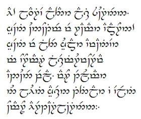 Although there are words that can be recognized by consulting the appendices of The Silmarillion, Unfinished Tales and The Lost Road, the sentence structure and spellings mark this version as different from the Quenya Tolkien decided on. For example, there are many parts ending in the consonant n, while the Quenya in The Lord of the Rings and later works lack this ending, and there are many parts that are composed of several compound words, while the Quenya in later works tends toward more separate words.