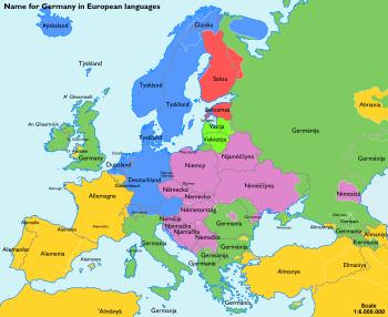 - ^ While the Italian name of the country belongs to the second category, the demonym is tedesco, belonging to the first category