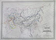 When the Qing conquered Dzungaria in 1759, they proclaimed that the new land was absorbed into Dulimbai Gurun in a Manchu language memorial.[15][16][17] The Qing expounded on their ideology that they were bringing together the "outer" non-Han Chinese like the Inner Mongols, Eastern Mongols, Oirat Mongols, and Tibetans together with the "inner" Han Chinese, into "one family" united in the Qing state, showing that the diverse subjects of the Qing were all part of one family, the Qing used the phrase "Zhōngwài yījiā" (中外一家; 'China and other [countries] as one family') or "Nèiwài yījiā" (內外一家; 'Interior and exterior as one family'), to convey this idea of "unification" of the different peoples.[18] A Manchu language version of a treaty with the Russian Empire concerning criminal jurisdiction over bandits called people from the Qing as "people of the Central Kingdom (Dulimbai Gurun)".[19][20][21][22] In the Manchu official Tulisen's Manchu language account of his meeting with the Torghut Mongol leader Ayuki Khan, it was mentioned that while the Torghuts were unlike the Russians, the "people of the Central Kingdom" (dulimba-i gurun/中國; Zhōngguó) were like the Torghut Mongols, and the "people of the Central Kingdom" referred to the Manchus.[23]