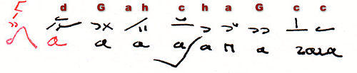 - as exoteric "phthora atzem", the sign was used for the transcription of music composed in makam acem, a makam connected to a certain Persian dastgah.