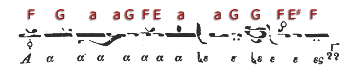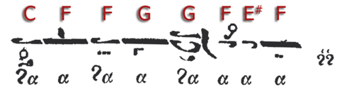 - ^ Likewise it could change from tritos, F—f with the finalis c, to the tetartos octave (G—g with f sharp) and its plagal finalis G.