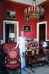 Reagan became the first lady of the United States when Ronald Reagan was inaugurated as president in January 1981. Early in her husband's presidency, Reagan stated her desire to create a more suitable "first home" in the White House, as the building had fallen into a state of disrepair following years of neglect.[71] White House aide Michael Deaver described the second and third floor family residence as having "cracked plaster walls, chipped paint [and] beaten up floors";[72] rather than use government funds to renovate and redecorate, she sought private donations.[13] In 1981, Reagan directed a major renovation of several White House rooms, including all of the second and third floors[73] and rooms adjacent to the Oval Office, including the press briefing room.[74] The renovation included repainting walls, refinishing floors, repairing fireplaces, and replacing antique pipes, windows, and wires.[72] The closet in the master bedroom was converted into a beauty parlor and dressing room, and the West bedroom was made into a small gymnasium.[75]