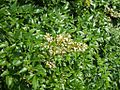 The inflorescences are panicles axillary or terminal erect with numerous flowers hermaphrodite with numerous ovate-oblong sepals of pinkish white color and spirally imbricated and 6 oblong petals of 4 by 2.5 mm, white, patent at the beginning. The flowers are white, borne in early summer in conical clusters held well above the foliage. The fruit is a bright red berry 5–10 mm diameter, ripening in late autumn and often persisting through the winter.