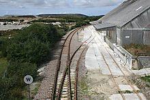 The Newquay and Cornwall Junction Railway (a branch from the Cornish Main Line at Burngullow) opened as far as Nanpean in 1869 and was extended in 1874 to connect with the Par to Newquay branch at St Dennis Junction.[8] The railway only carried goods traffic so there was never a passenger station at Nanpean; the southern section remains open for china clay trains.