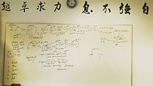 On 21 May 1995, the College Resource Centre was opened. The three-storey building housed the Resource Library, the Computer Centre, the AVA Room and seminar rooms.[3] In 1997, Nanyang Junior College was selected to be the second college in Singapore to offer the Art Elective Programme (AEP). From 15 January 1999, Nanyang Junior College joined Hwa Chong Junior College and Temasek Junior College as the third pre-university centre in Singapore to offer the Chinese Language Elective Programme (C-LEP).[13] This came as a recognition of the efforts made by the college in maintaining its Chinese heritage and culture since its founding.[14] Nanyang Junior College was selected by Ministry of Education in 2000 for an on-site re-development of its campus under the PRIME project. in which the Ministry of Education bored 95 per cent of the re-development costs.[3] The three-phrase re-development work included construction of a new main building, which feature new science and computer laboratories, a new library, and four new lecture theatres. Lessons and administrative operations continued in the old building and subsequently in temporary tutorial rooms and offices as the works were carried out between 2001 and 2004.[15] The reconstruction works were briefly halted in 2003 due to the bankruptcy of the main contractor, which also affected a number of residential developments in Marine Terrace.[16] The college moved into the newly re-developed campus building in January 2004, and officially declared the completion of the redevelopment works in June 2005.[17][18] A stone feature, on which wrote "饮水思源" was donated by Mdm Ho Won Ho on her retirement as the principal of Nanyang Junior College in 2005.[19]