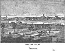 The area around the town was once known as "the Great Black Swamp". This area was opened to European settlement following the Battle of Fallen Timbers in 1794, which took place about 26 miles to the east.[7] The City of Napoleon was founded in 1832 and named for French emperor Napoleon Bonaparte. The Miami and Erie Canal was finished in 1843, bringing German immigrants to the area.[7][8] By the 1880s, the town had more than 3,000 residents; the population growth due in part to the town's location on the Miami and Erie Canal and two separate railroad lines. At the time, most employment existed through businesses which made products for farmers in the surrounding countryside.[9]