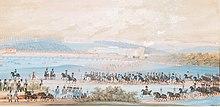 He ordered a young cavalry officer named Joachim Murat to seize large cannons and used them to repel the attackers on 5 October 1795—13 Vendémiaire An IV in the French Republican Calendar; 1,400 royalists died and the rest fled.[55] He had cleared the streets with "a whiff of grapeshot", according to 19th-century historian Thomas Carlyle in The French Revolution: A History.[56][57]