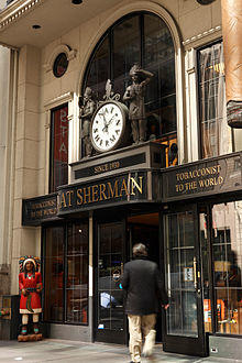 During the 1960s, the Sherman shop expanded its wares to include pipes. Over 1,000 pipes were offered for sale in a 40-foot (12 m) long case hung along the wall of the store.[1] The company also began to sell pipe tobacco under the "Nat Sherman" brand name.[1] At the time of its expansion, the company's pipe department was perhaps the largest in New York City and the United States.[2]