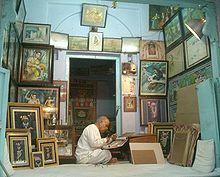 Nathdwara Artists are a group of artists working around the precincts of the famous Nathdwara temple in Rajasthan. They are noted for Rajasthani-style paintings, called "Pichwai Paintings", belonging to the Mewar School. The paintings revolve around the image of Shrinathji, the enigmatic black-faced figure of Krishna, who is shown holding up Mount Govardhan. Several authoritative books have been published on this subject.[14]