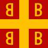 The current coat of arms of Greece derives from the Greek national flag, which was adopted in March 1822.[9] Theories published retrospectively in Greece try to justify this use by making a connection to Byzantine flags and insignia. The 1934 edition of the Great Greek Encyclopedia explains that "the current national emblem of Greece shares this with the last emblem of Medieval [Greece], that it is made up of a cross dividing the emblem into four quarters. The difference is that the emblem of the Imperial house of the Palaiologoi also had a capital B in each of the quarters".[7] This design is well attested in Byzantine and Western sources during the 14th and 15th centuries,[10][11] but as the Byzantines entirely lacked the Western tradition of "national" or family heraldic designs as coats of arms, this design was only used in flags.[11]