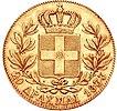 Since its establishment, the emblem has undergone many changes in shape and in design, mainly due to changes of regime. Apart from the cockade, the Provisional Administration of Greece used a seal depicting the goddess Athena and her symbol, the Owl of Athena, encircled by the words "Provisional Administration of Greece".[5] During the governorate of Ioannis Kapodistrias (1827–1831), a new seal based on the phoenix, the symbol of rebirth, was created.[7] The words "Hellenic State", accompanied with the date "1821" (the year the Greek War of Independence began) in Greek numerals, surrounded it. This seal gave Greece's first currency, the Phoenix, its name.[7] The phoenix was also used as a symbol by later Greek non-monarchical governments, including the Second Hellenic Republic (1924–1935) and the junta-proclaimed republic of 1973–1974.[7][8]