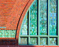 The National Farmers' Bank of Owatonna, Minnesota, United States, is a historic bank building designed by Louis Sullivan, with decorative elements by George Elmslie. It was built in 1908, and was the first of Sullivan's "jewel box" bank designs. The building is clad in red brick with green terra cotta bands, and features two large arches on its street-facing facades. Single-story wings, originally housing bank offices, extend along each side. Internal elements include two stained-glass windows designed by Louis J. Millet, a mural by Oskar Gross, and four immense cast iron electroliers designed by Elmslie and cast by Winslow Brothers Company.[2][3]