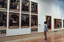 The MNAA's first museum director was the energetic José de Figueiredo, who promptly began reforming the museum based on the latest planning and exhibition principles and re-orienting it decisively towards painting. Figueiredo was the first to study and identify the authorship and significance of Saint Vincent Panels, a 15th-century polyptych discovered c. 1882 and attributed by Figueiredo to Nuno Gonçalves.[5] The St. Vincent panels were installed in the museum by 1916 and remain perhaps its best known piece.