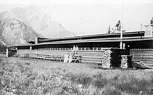 While these policies of forcible removal of Indigenous people on park lands were practised under the name of conservation, the government of Canada was simultaneously building permanent towns within parks to house tourists in early national parks such as Banff and Jasper.[25][24]