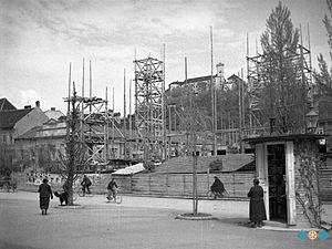 Since 1791, the library was located in the building of Ljubljana lyceum. In 1919, additional space was provisionally dedicated to it in the building of the Poljane Grammar School. In 1930–31, plans for a new building were created by Jože Plečnik. Initially the project encountered resistance by the Yugoslavian authorities based in Belgrade. However, persistent student protests and demonstrations have been effective,[6] and the new building was erected between 1936 and 1941 by the company of the constructor Matko Curk.[7]