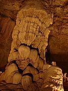 Mrs. Wuest then decided that she would fund development.[6] Orion dropped out of school to assist. He also approached Jack Burch who had just finished work on developing the Caverns of Sonora near Sonora, Texas. Jack agreed to help and development began early in 1963. Mrs. Wuest remarried Harry Heidemann, a retired Texas Highway Patrolman in the early 1960s. Together, they started work on developing the cavern. The full-time development crew included Mrs. Wuest-Heidemann, Mr. Heidemann, Jack Burch, Orion Knox, and Reggie Wuest (Mrs. Wuest-Heidemann's son).[3] Development on the cavern began in 1963 and work on lights and trails continued until opening day, July 3, 1964.[7] The cavern has been opened ever since and is still owned and operated by family members. Natural Bridge Caverns became a registered United States National Natural Landmark in 1971.[8]