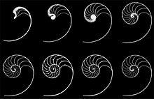 The nautilus shell presents one of the finest natural examples of a logarithmic spiral, although it is not a golden spiral. The use of nautilus shells in art and literature is covered at nautilus shell.