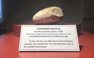 - ^ a b Wani, R.; et al. (2008). "First discovery of fossil Nautilus pompilius (Nautilidae, Cephalopoda) from Pangasinan, northwestern Philippines". Paleontological Research. 12 (1): 89–95. doi:10.2517/1342-8144(2008)12[89:FDOFNP]2.0.CO;2.