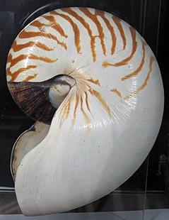 Nautilus is a genus of cephalopods in the family Nautilidae. Species in this genus differ significantly in terms of morphology from those placed in the sister taxon Allonautilus.[1] The oldest fossils of the genus are known from the Late Eocene Hoko River Formation, in Washington State and from Late-Eocene to Early Oligocene sediments in Kazakhstan.[2] The oldest fossils of the modern species Nautilus pompilius are from Early Pleistocene sediments off the coast of Luzon in the Philippines.[2]