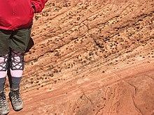 The age of the Navajo Sandstone is somewhat controversial. It may originate from the Late Triassic but is at least as young as the Early Jurassic stages Pliensbachian and Toarcian.[2] There is no type locality of the name. It was simply named for the 'Navajo Country' of the southwestern United States.[6] The two major subunits of the Navajo are the Lamb Point Tongue (Kanab area) and the Shurtz Sandstone Tongue (Cedar City area).[7]