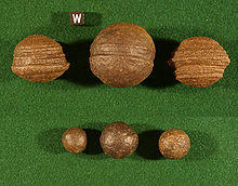 The iron oxide concretions found in the Navajo Sandstone exhibit a wide variety of sizes and shapes. Their shape ranges from spheres to discs; buttons; spiked balls; cylindrical hollow pipe-like forms; and other odd shapes. Although many of these concretions are fused together like soap bubbles, many more also occur as isolated concretions, which range in diameter from the size of peas to baseballs. The surface of these spherical concretions can range from being very rough to quite smooth. Some of the concretions are grooved spheres with ridges around their circumference.[4][5]