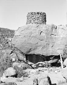 The sites are located within the cultural area known as the Dinétah, the traditional homeland of the Navajo tribe of Native Americans. Pueblitos [pweβˈlitos] (Spanish for "little villages"; cf. Pueblo Native Americans) are generally found in defensible locations along mesa rims and on isolated outcrops and boulders. The structures themselves can consist of from one to six rooms, and take the form of multi-storied towers, cliff dwellings, and fort-like enclosures.