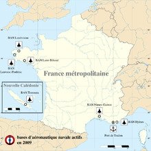In 2017, the French Naval Aviation has four naval air stations (BAN), all located in metropolitan territory.