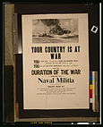 In 1914, Congress passed a bill recognizing the naval militia as a reserve component of the United States Armed Forces and reorganized them into the National Naval Volunteers.[12] During World War I, naval militiamen were drafted into federal service. Many naval reservists, including a significant number of sailors from the Michigan Naval Militia, served in Naval Railway Battery crews on the Western Front.[13] The primary federal responsibility of members of the naval militias was cemented by the Naval Reserve Act of 1938.[14] In 1940, the naval militias were once again federalized to fight in World War II.[15] Following the war, many states either did not rebuild their naval militias, or deactivated them in the years that followed.