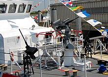 One of the first Maritime Force Protection Units was established by the United States Coast Guard (USCG) at Kings Bay. The Maritime Force Protection Unit provides escort protection for the submarines as they transit on the surface, to and from their homeports.[6][7][8][9][10][11][12][13] The unit includes some smaller vessels, and two Marine Protector class cutters, the USCGC Sea Dragon and the USCGC Sea Dog. The Sea Dragon and Sea Dog, and two other cutters, the USCGC Sea Devil and USCGC Sea Fox, although crewed by sailors from the Coast Guard, they were ordered, and paid for, by the Navy. For protecting submarines the Navy requested a slightly modified design, which added gyrostabilized machine gun, with advanced optics, which was fired under remote control from the ship's bridge. The gyrostabilized gun's greater long range accuracy made it more appropriate for intercepting speedboats laden with a suicide bomb.