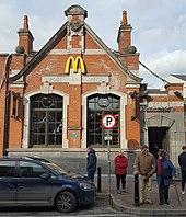 The orientation of the three original streets remains from the Middle Ages but the buildings date from the Victorian and Edwardian periods. The town’s Post Office on Trimgate Street office was built in 1908 on the site of an earlier post office.[2][3] In 1990, the post office was relocated to Kennedy Road. The building of a new shopping centre re-oriented the town’s centre. The onetime post office was acquired as the site of the town’s first McDonald’s restaurant.