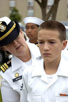 The U.S. Navy League Cadet Corps (also known as the United States Naval League Cadet Corps or "NLCC") is a junior version of the United States Naval Sea Cadet Corps (NSCC) program developed for younger cadets, aged 11 through 14, under the auspices of the Navy League of the United States. The mission of the NLCC is to train cadets about the seagoing military services, community service, citizenship, and an understanding of discipline and teamwork so that they are prepared for membership in the NSCC. While NLCC cadets can go into the NSCC when they turn 13, they may also elect to remain in the NLCC until age 14, when they must either transfer into the NSCC, or leave the program.