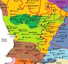 Home to Uto-Aztecan indigenous peoples such as the Huichol and Cora, the region was exposed to the conquistadores, Hernán Cortés and Nuño de Guzmán, in the 16th century. Spanish governance was made difficult by indigenous rebellions and by the inhospitable terrain of the Sierra del Nayar. The last independent Cora communities were subjugated in 1722. The state's name recalls the Cora people's label for themselves: Náayerite, commemorating Nayar, a resistance leader.[9]