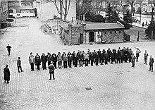 During the First World War, eight to nine million prisoners of war were held in prisoner-of-war camps, some of them at locations which were later the sites of Nazi camps, such as Theresienstadt and Mauthausen. Many prisoners held by Germany died as a result of intentional withholding of food and dangerous working conditions in violation of the 1907 Hague Convention.[6] In countries such as France, Belgium, Italy, Austria-Hungary, and Germany, civilians deemed to be of "enemy origin" were denaturalized. Hundreds of thousands were interned and subject to forced labor in harsh conditions.[7] During the Armenian Genocide, internment proved deadly to Armenians who were held in temporary camps prior to their deportation into the Syrian Desert.[8] In postwar Germany, Jews from Eastern Europe were incarcerated at Cottbus-Sielow and Stargard as "unwanted foreigners".[9]