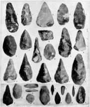 Generally small and widely-dispersed fossil sites suggest that Neanderthals lived in less numerous and socially more isolated groups than contemporary Homo sapiens. Tools such as Mousterian flint stone flakes and Levallois points are remarkably sophisticated from the outset, yet they have a slow rate of variability and general technological inertia is noticeable during the entire fossil period. Artifacts are of utilitarian nature, and symbolic behavioral traits are undocumented before the arrival of modern humans in Europe around 40,000 to 35,000 years ago.[4][17][18]