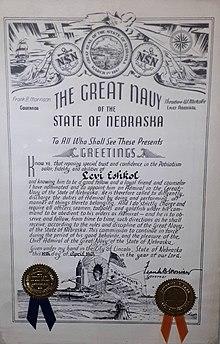 - ^ Cooper, Harold. "The Great Nebraska Navy: Its Origin and Growth" (PDF). Nebraska State Historical Society. Retrieved October 5, 2017.