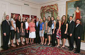 The program was founded in 1975 and is one of the most decorated in women's volleyball, with more wins than any other program and five national championships.[3] Nebraska has been ranked in every weekly poll since the introduction of the AVCA National Poll in 1982, and have spent more weeks ranked number one than any other program. The Cornhuskers' 73 All-Americans are the most in the country.[4][5] Nebraska regularly leads the NCAA in average attendance, and has participated in several of the highest-attended women's volleyball games ever played.[6]